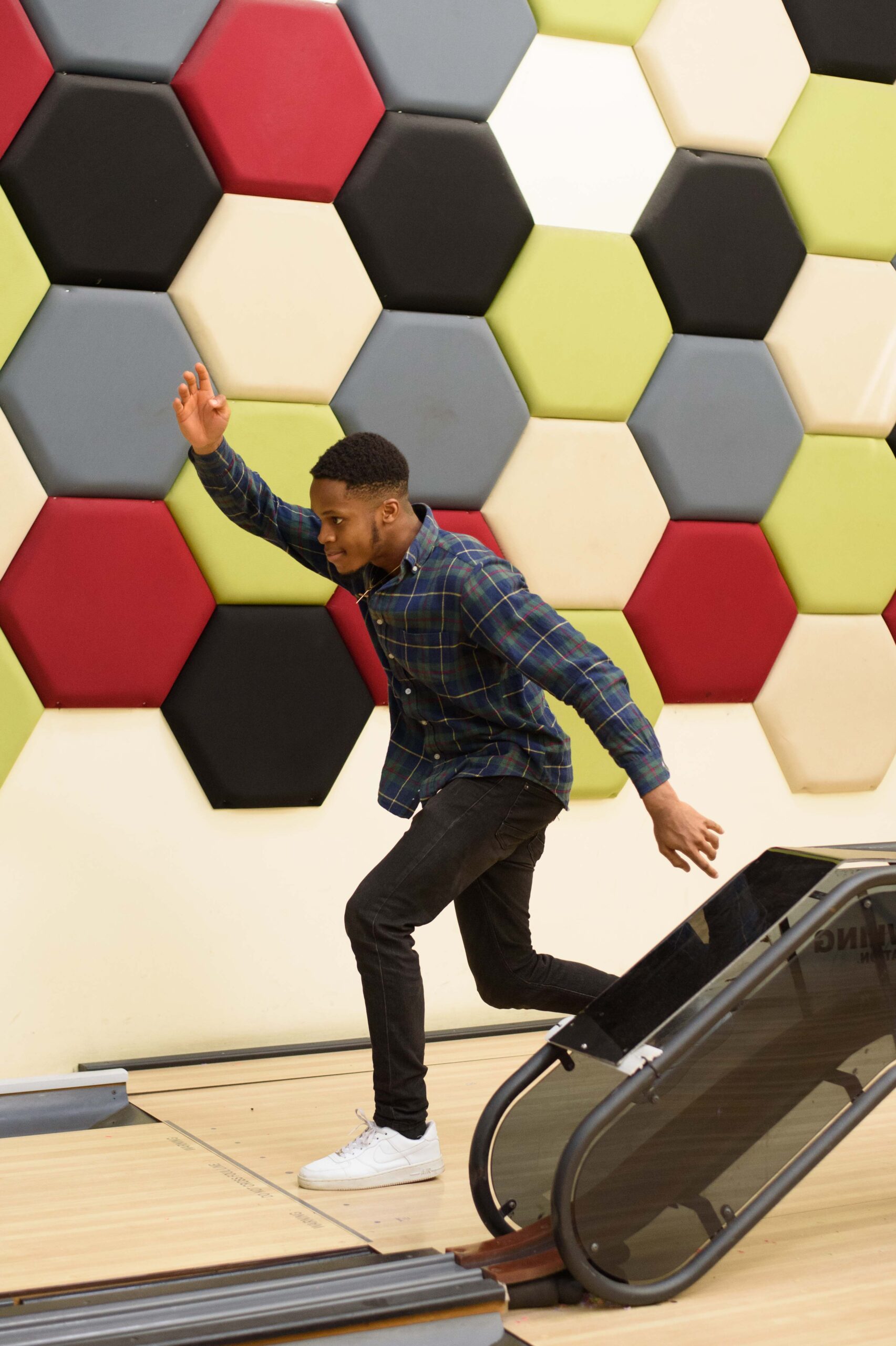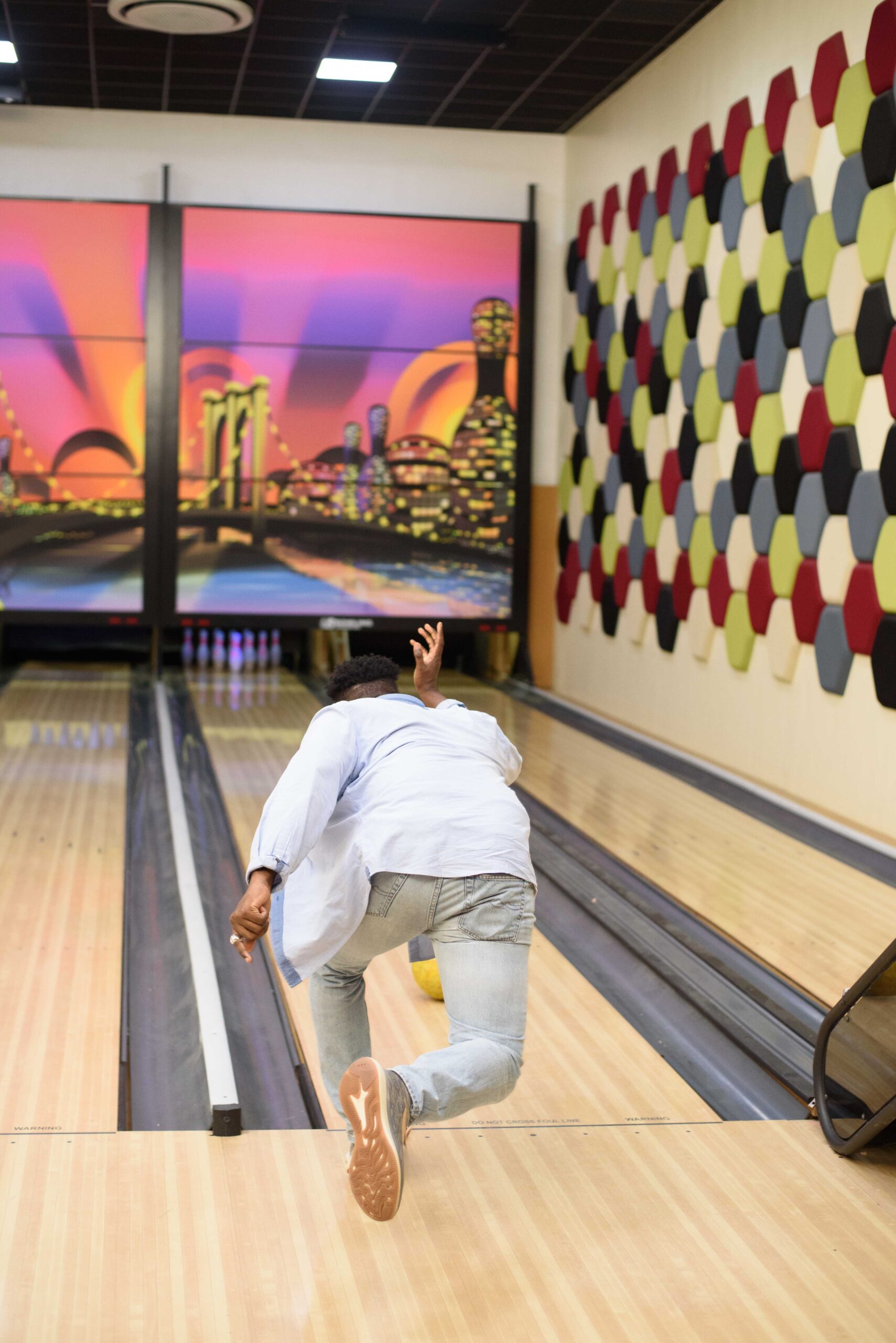 Style meets play, smart casual outfits to enhance play while also being photo ready. At the Bowling alley sneakers are required before play, bowling shoes are provided but purchase of socks is required before using the shoes